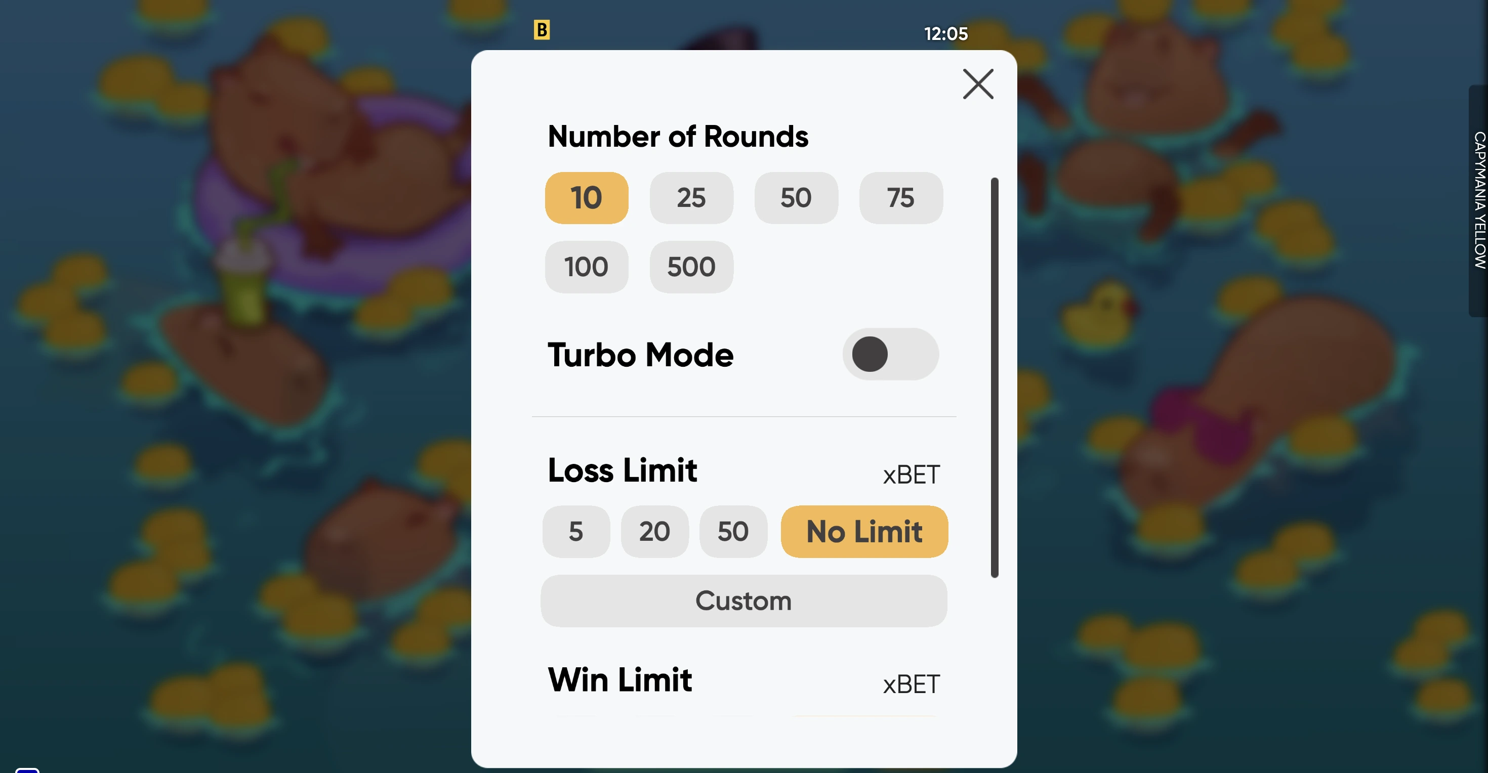 Turbo mode is only available in Autoplay mode. When activated, players will not see the scratching moment but immediately see the round result.