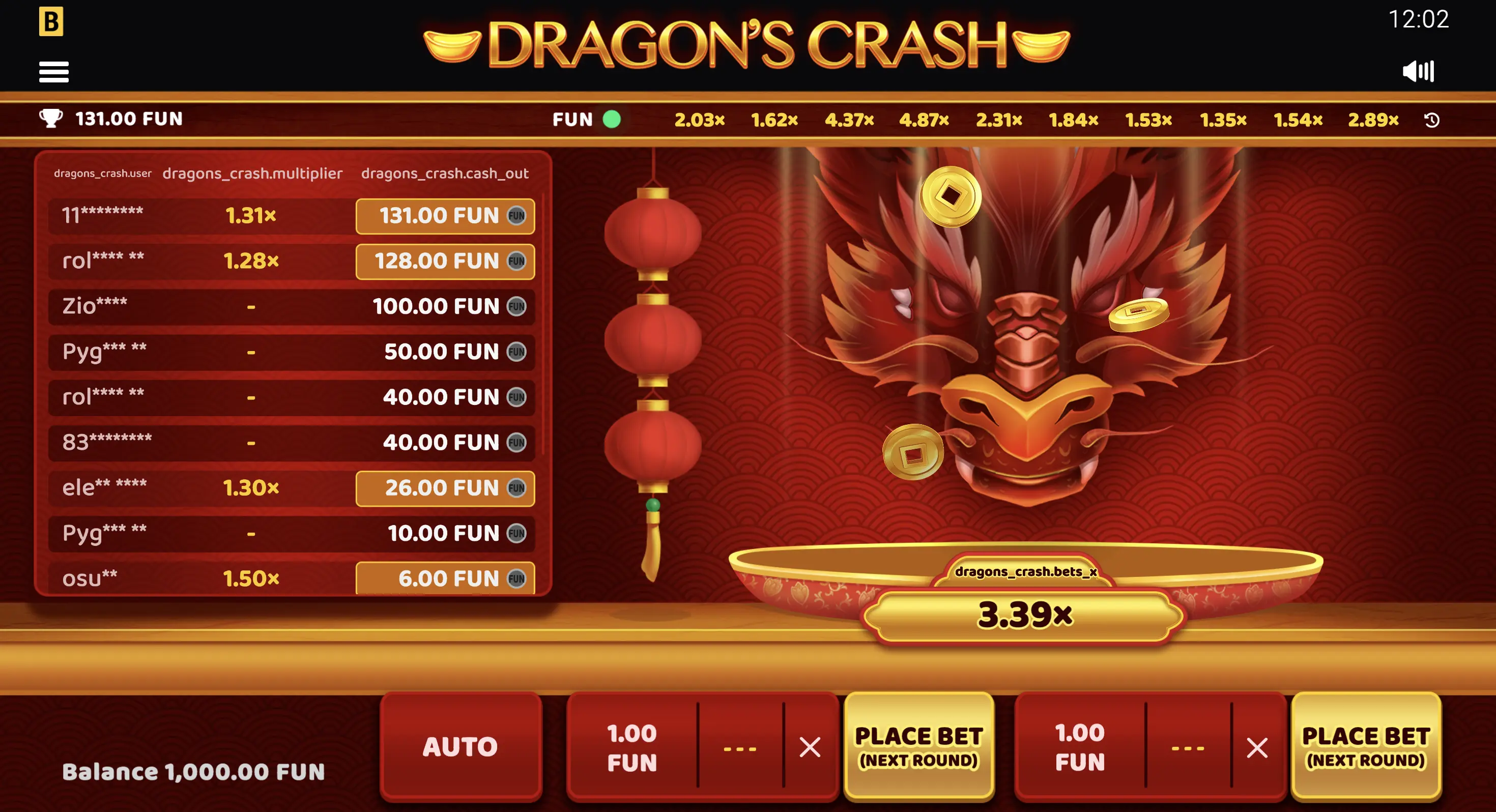 In Dragon's Crash, players can achieve substantial wins, with the game offering a maximum payout of up to x10,000 of your bet, adding to the excitement of each spin.