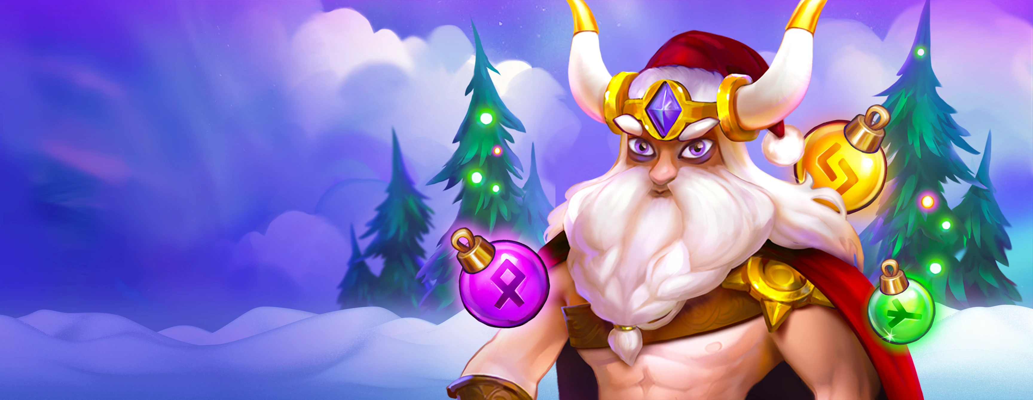 In Norse mythology, the mighty Thor is the god of lightning and thunder, and in Gemhalla, he uses his incredible magical powers as the god of multipliers! Watch him change into a festive red garment and switch his regular horned helmet to a holiday one in the name of the Xmas celebrations, and join the merrymaking!