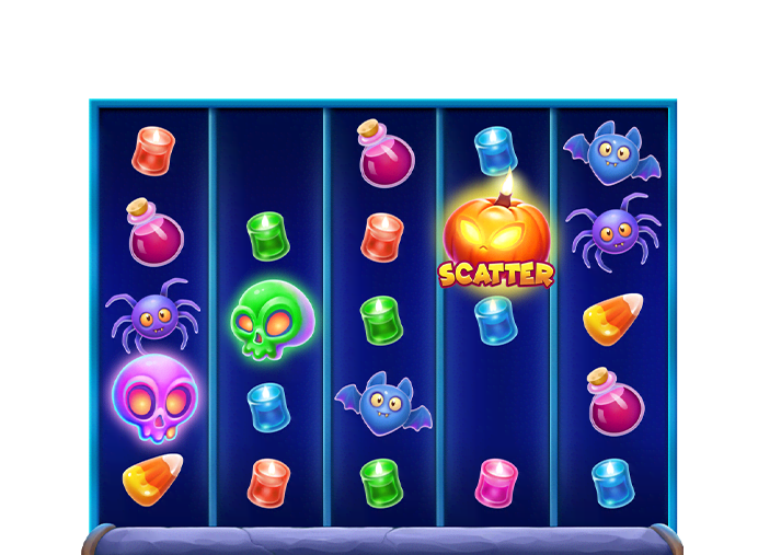 3, 4, or 5 Scatter pumpkins start the Bonus game of 5, 7, or 10 Free Spins.