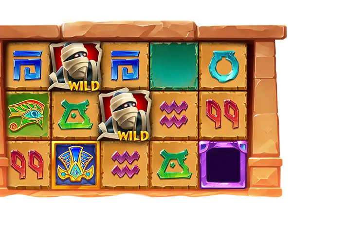 The Egyptian 5x3 slot features treasure symbols and Wilds on spinning reels. Each win unlocks a Gamble round or can lead to free spins inside the mummy tomb, with a chance of retriggering.