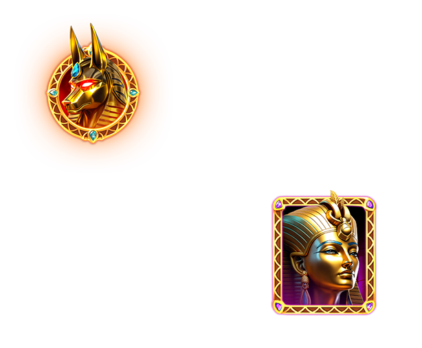 The Anubis head symbol is both the Wild and Scatter in this slot. It substitutes any symbol in a winning combination and triggers the Bonus game.