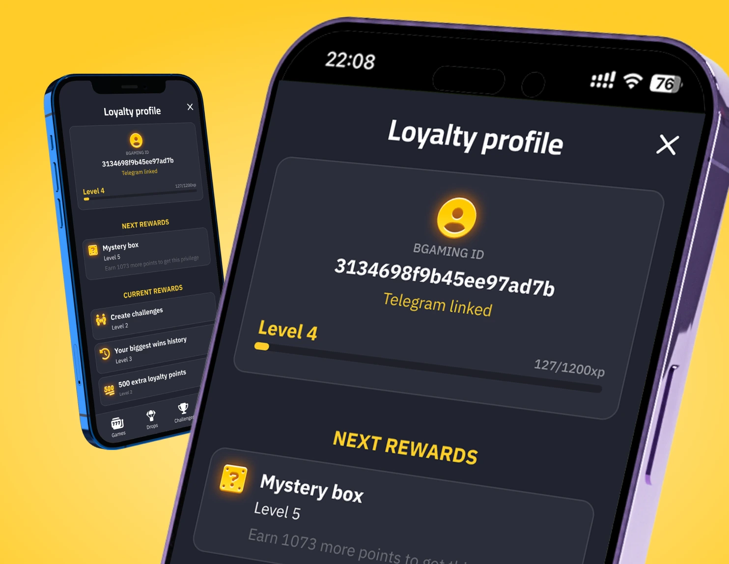 BGaming Loyalty is a fully integrated experience designed to keep players engaged. One of its features, BGaming Lobby, lets players seamlessly explore and switch between BGaming’s games, with personalized suggestions based on their preferences.