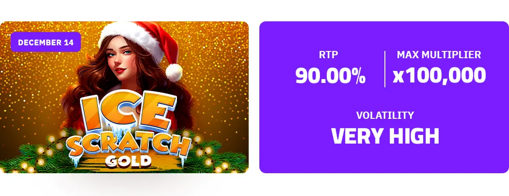 The third release of the season is the Ice Scratch pack, out on December 14, which features a trio of scratch games in which frozen cards with different bet values give players the chance to bag up to a x100,000 max win. The very-high volatility casual online game with 90% RTP features nine concealed cells to scratch off, manually or in Autoplay mode, and uncover hidden values. Match three for an instant win. Gold, Silver, and Bronze games offer atmospheric gameplay with winter vibes in the company of a charming lady.