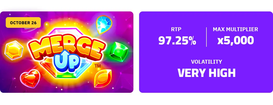 We've fused the excitement of casino-favorite Bonanza slots with the cutting-edge Merge mechanics from mobile gaming to introduce Merge Up™, a game that stands unmatched in the iGaming market.