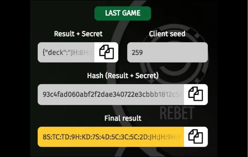 Having this Result + Secret you can actually verify if the Hash player received is the same with the one that any hash generator can create.